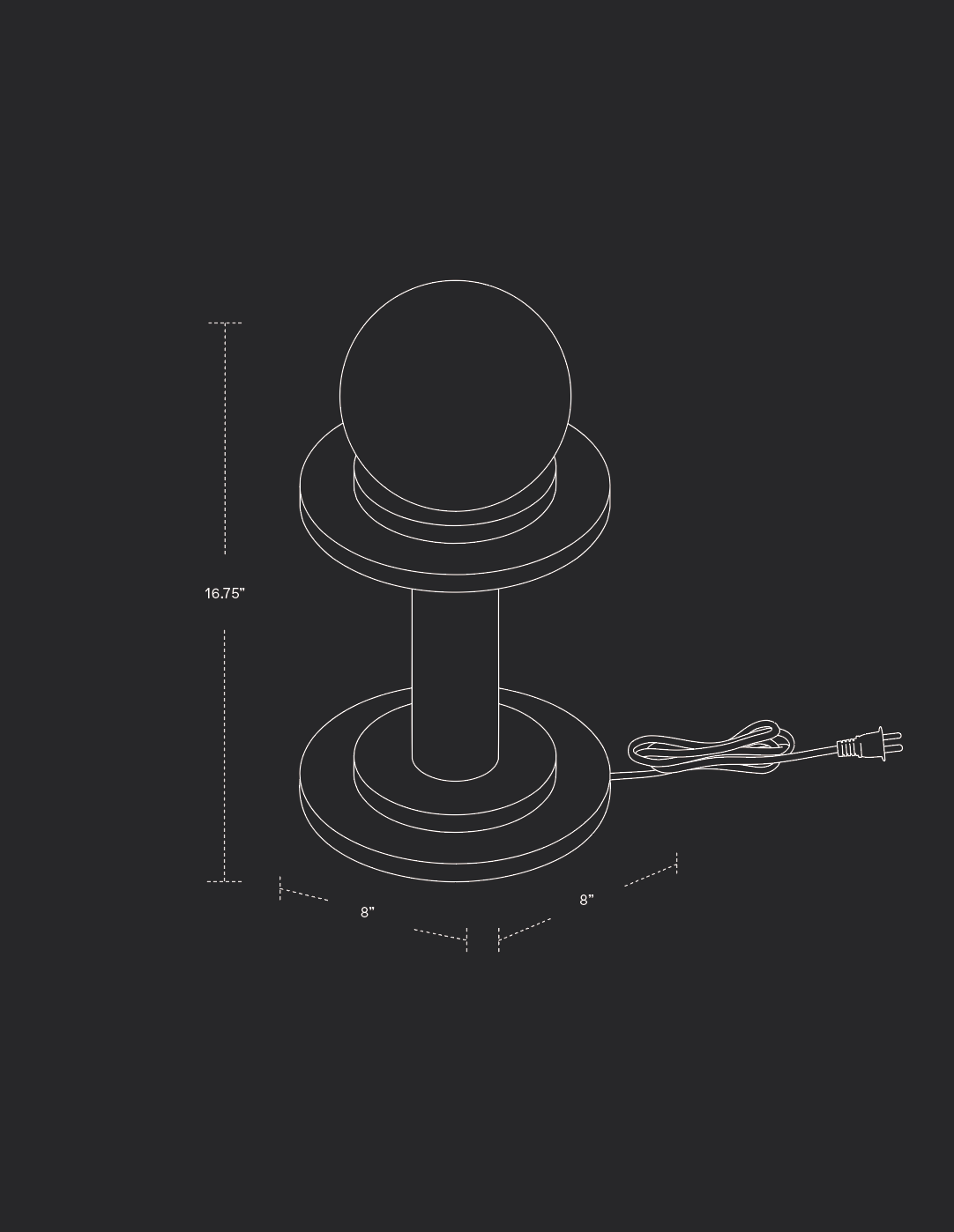 Lacquer Paint over MDF or Euro-ply, handblown glass globe and US-made cloth-covered wire.